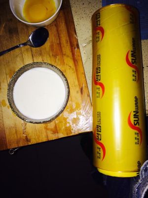 牛奶盖上保鲜膜,如蒸笼蒸10分钟