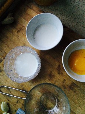 蛋清蛋黄分离。只留蛋清。(蛋黄可以制做蛋挞时用)。