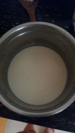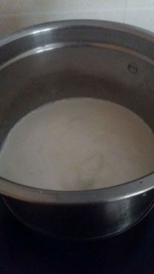 这是热好的奶(重点讲下若若徐也是第一次做,看到大家说奶在锅内加热不能沸腾。为了后面留奶皮,比较难把握火候。很多推荐奶在蒸下。1我用的是烧开热水,奶放进热水里。后来凉了半天也没见奶皮,怕温度不够,2第二次又重新热奶。煮的方式,⚠不要煮沸,因为煮沸后会把牛奶中的奶汁煮掉。这样就不会结奶皮)