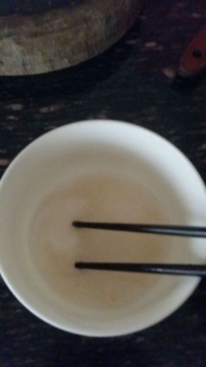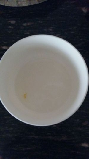 拿筛子过滤掉搅拌好的液体中保留的蛋清和未融化的糖颗粒,使双皮奶更嫩。挤一点儿柠檬汁(去除鸡蛋的腥味),然后把带有液体的碗在桌子上磕几下,使液体中没有气泡。