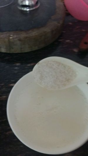 放凉的牛奶加入两勺白糖,搅拌均匀