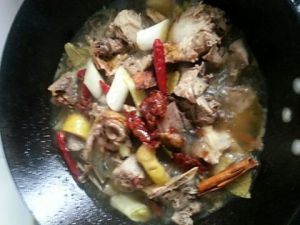 各种配料准备好了!花椒,大料,葱,姜,蒜,干辣椒,螺丝椒,喜欢吃辣的朋友可以根据自己的喜好添加!