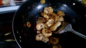 加入豆瓣酱,干辣椒,葱姜,酱油,翻炒
