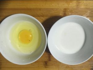 淀粉加少量水,粉湿即可。加入一个蛋清搅拌均匀。