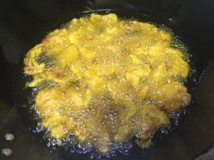 全部炸完后,油升九分热复炸。全部重炸下(让其更脆及收油)