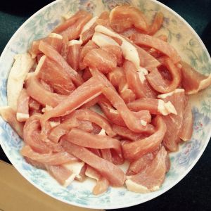 里脊切成条。