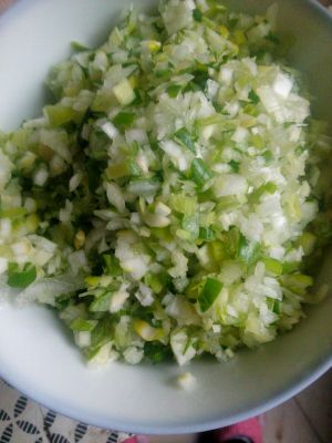 葱切碎备用,切的时候一定要快,都给我辣哭了