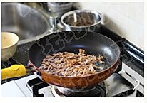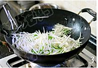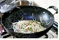 煎锅倒适量的油,大火烧热,下入肉丝扒熟;