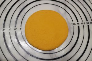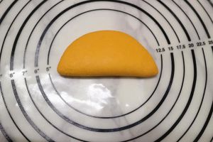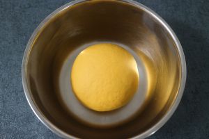 蒸熟的南瓜用勺子压成泥,放至温热,加入干酵母,糖,拌均,静置3分钟,让酵母活化。