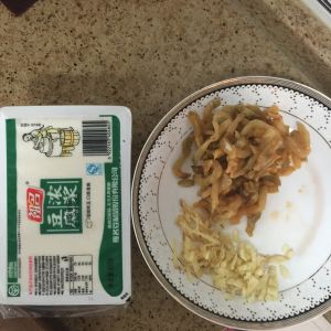 姜蒜切丝、榨菜切丝水里浸泡减少盐份,豆腐,辅料备齐待用