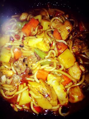 做法5:大盘鸡拌面