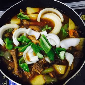 开后加入土豆洋葱青椒