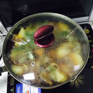 盖盖子大火烧开后转小火慢炖,因为炒锅另有用途所以我转到电磁炉上慢炖了。