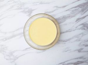 将淡奶油 、牛奶 、糖粉 、炼乳一起混合,隔水加热。目的是将炼乳和糖粉融化,待放置冷却。隔水加热用小火就好,稍微热下,糖粉化开即可。如果是夏天,就不用加热了,会自己化掉。