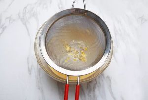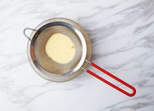 这个环节必须筛,而且很有用,它可以帮助过滤掉没有搅拌开的的残渣,使蛋挞的口感更佳细腻、光滑。