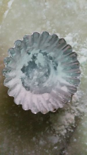 蛋挞模撒适量面粉防粘,做好防粘措施。
