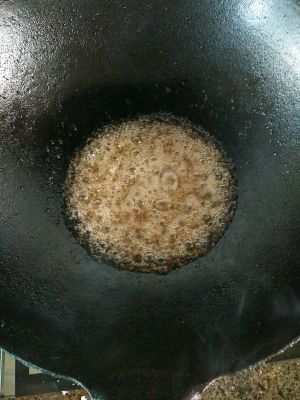 剩少许油,热锅,加一碗水,5勺白糖,大火后转小火