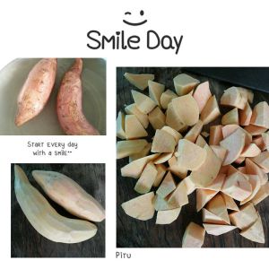 准备食材: 红薯(北方叫地瓜)去皮,洗干净,切菱形块。