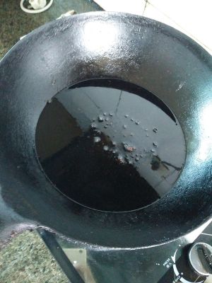 锅中加少量油,加入白糖,小火熬,小火,小火,重要的事情说三遍哈!不停的用勺子搅拌。