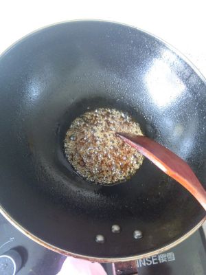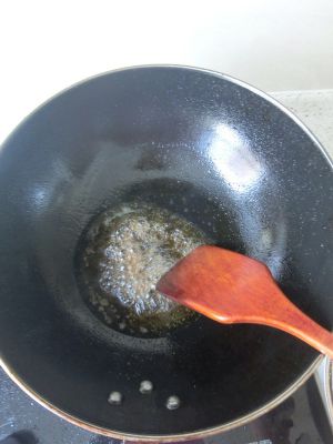 锅中留少量底油,加入白糖,小火慢熬。