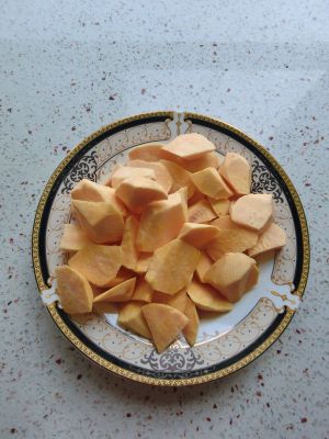 地瓜切滚刀块。