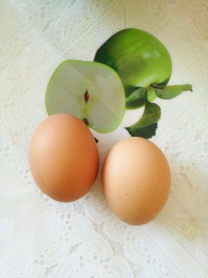 将弄好的蛋液倒入挞皮里,三分之二就可以,不要太满。我里面又加的桃肉和葡萄肉。