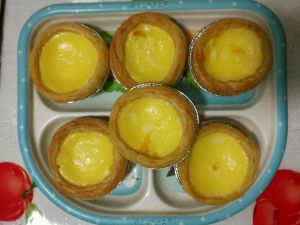烤箱预热上火180度,下火200度,蛋挞皮加入蛋挞水,蛋挞水一定要过滤,中下层,30分钟!