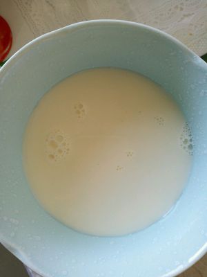 鸡蛋打散,倒入牛奶中,搅拌均匀