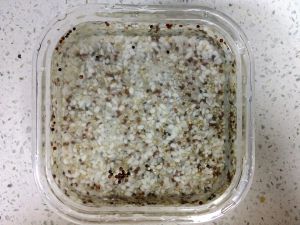 1、 将藜麦煮熟(藜麦煮熟非常简单,藜麦简单清洗后水开放入进去,然后水没过藜麦,煮10分钟捞出即可)。