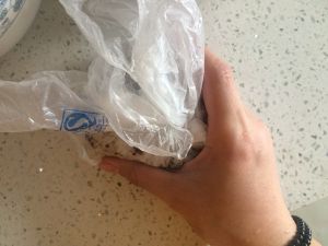 用保鲜膜把饭团包起来用手压成三角饭团。