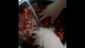 水开将小龙虾倒进,焯水一到两分钟,(别人喜欢炸,我认为用水焯更好,还不浪费油),然后捞起来清水冲洗一下,晾干备用!