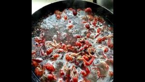 在开水中倒入两勺盐,把处理好的小龙虾倒入焯水。