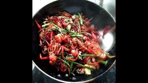 在锅中倒入油加热,下葱姜煸香,再倒入小龙虾翻炒2分钟。