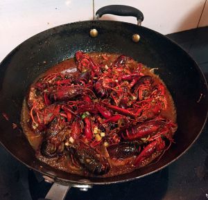 下郫县豆瓣和少许面酱炒香,带炒出红油就可以请虾入锅了