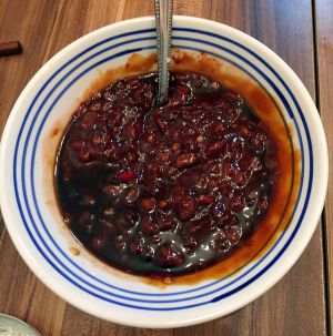 调制酱汁,白糖、豆瓣酱、郫县豆瓣酱、泡椒拌在一起