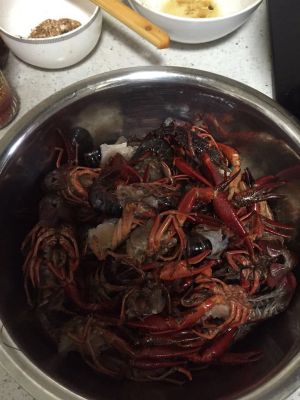 洗好的龙虾,今天的虾品质一般,去市场晚了,没好虾了。一定要把腮洗干净。