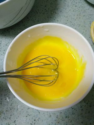 加入白砂糖和炼乳隔水加热溶解,分次加入打好的蛋黄,一定要搅拌均匀