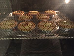 烤箱预热5分钟,放进去195度30分钟(之前用的210分钟烤的,外面焦黄,里面不熟,所以调整了温度和时间)