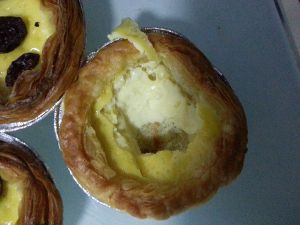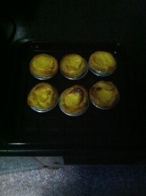 将蛋挞液放入蛋挞皮中至八九成满。烤箱预热5分钟,上下火220度25分钟即可