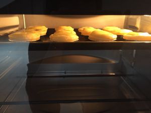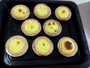 烤箱200度预热10分钟,放入蛋挞,上下火170度,考25分钟,出炉!第一次尝试,还是成功滴。