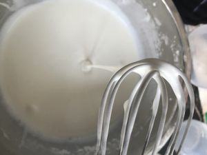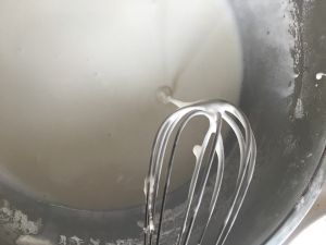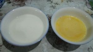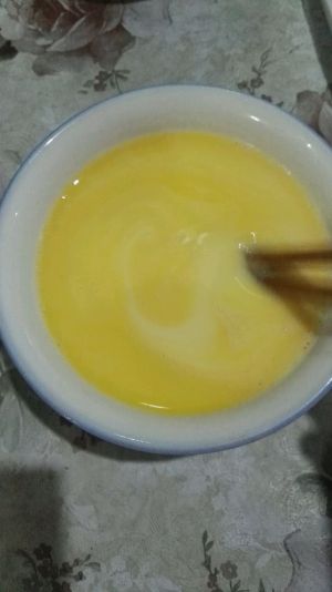 糖粉在牛奶中融化,全蛋液充分搅打即可,不需完全打发。