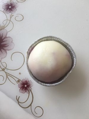 奶油打发好后 火龙果切成小碎块 取35g的皮 擀好 包入奶油 火龙果即可 放入蛋挞模中 (如果期间粘手即可拿些熟糯米粉)