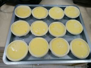 把挞水倒到挞皮里,位于八分满就可