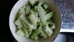 准备一根冷冻的黄瓜,这样吃起来才波脆、波脆的……