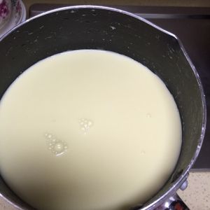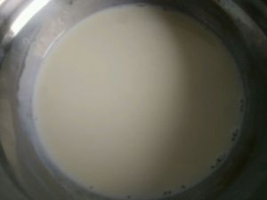 牛奶230毫升左右,倒进锅里加热,同时倒入白砂糖60克左右,搅拌到溶解即可。