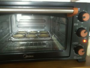 烤箱预热到200度,放入蛋挞,烤约25分钟至表面金黄色