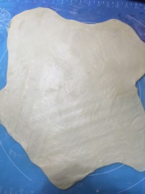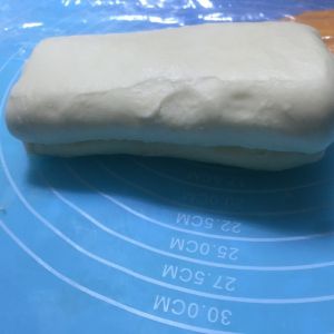 达到这样就可以了…同法擀三次,作用就是要把黄油揉散到面皮里面去