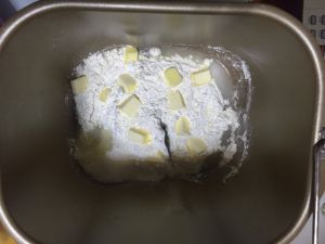 把所有A材放入面包机,糖和盐对角放(盐忘记输入了,就需要一克),遵循先液体后固体的放入面包机,按和面工序…面包机要打开盖子和面