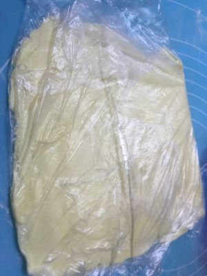 趁面冷藏的时候把100g黄油擀薄片状(挺好擀的,就是不容易成型,放保鲜袋里面擀之前,要吗好)