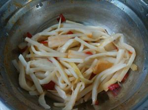 闷煮十分钟后下酸笋翻炒继续闷煮五分钟。(酸笋也可以一开始就放,我只是怕闷煮太久酸笋不脆,所以后面再放!)